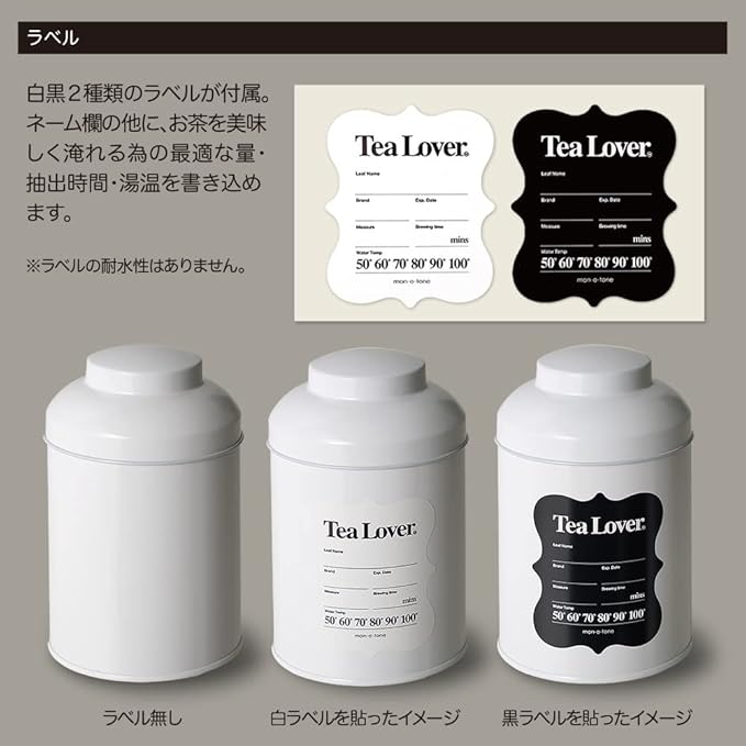 mon・o・tone ティーキャニスター3個セット(Lサイズ・ホワイト) ※オリジナルラベル付き