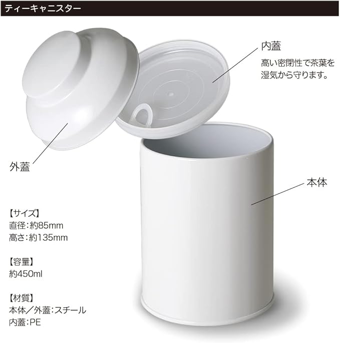 ティールームに置いてあるような可愛い見た目のキャニスター。スチール缶でできているため軽くて丈夫です。中には内蓋が付いているので、密閉性が高く、お茶の香りを逃しません。茶葉が200gほど入る大きめサイズなので、どんな茶葉も淹れることができます。